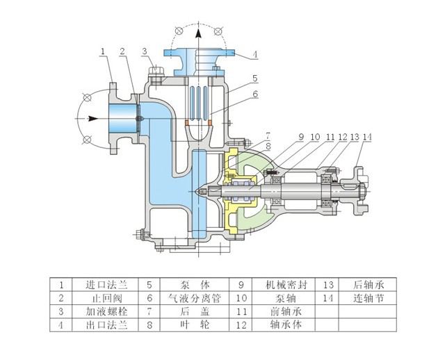 3、為使泵體內(nèi)能夠保持一定的儲存液,以達(dá)到較好的自吸能力和防止機(jī)械密封的干磨擦,必須使泵的