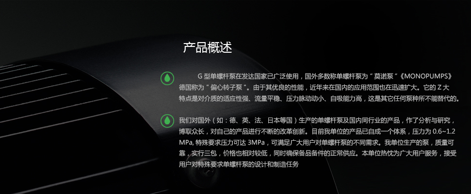 3、石油工業(yè):輸送原油。近年來,尤其成功地抽吸地下千米之深的原油與水的混合物,煤田里的煤田氣和水的混合物,從而大大降低了機(jī)械采油、采煤田氣的成本。當(dāng)油田到了后期,使用螺桿泵往地層內(nèi)灌注聚合物增加油田采收率。