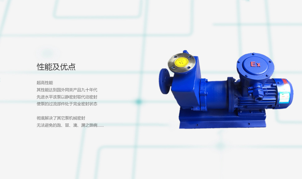 ZCQ型磁力自吸泵結(jié)構(gòu)緊湊,外形美觀,體積小,噪音低,運行可靠,使用維修方便,可廣泛用于石油、化工、制藥、電鍍、印染、食品、科研等單位抽送酸、堿、油類及稀有貴重液體、毒液、揮發(fā)性液體,以及循環(huán)水設(shè)備配套,特別是易漏、易燃、易爆液體的抽送。因此,它是有廣泛的用途,我們真誠地向用戶推薦這種產(chǎn)品。