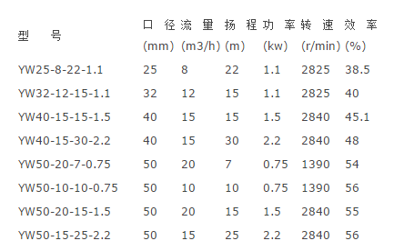 YWB防爆系列液下污水泵性能參數(shù)