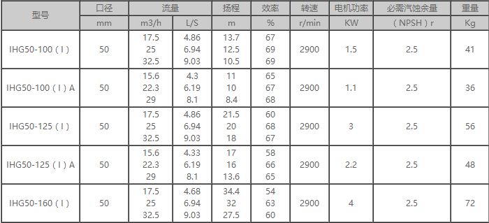 IHG不銹鋼離心泵型號參數(shù)分析表